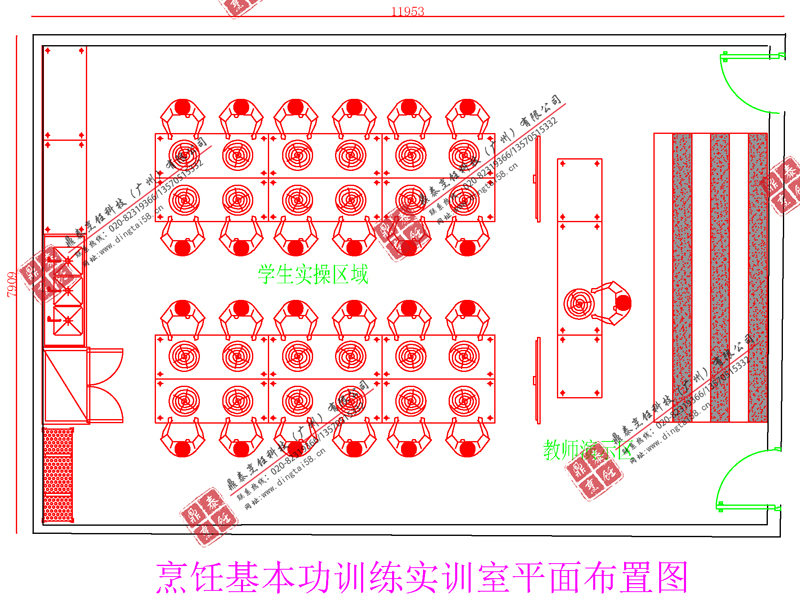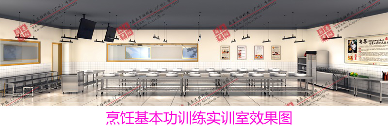 烹飪基本功訓練實訓室主要是進行基本功訓練的場地,是既能滿足中式烹調基本刀工、拋鍋基本功訓練,又能展示中外烹飪發展歷史、中國飲食文化、各菜系烹飪技法,以環境促進學生職業素養的養成。實訓室可提供刀工、鍋功、雕刻、拼盤等基本功實訓之用,同時具有烹調師社會培訓和職業技能考評的功能。